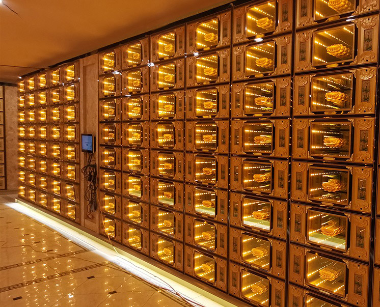用于殯儀館、骨灰堂等骨灰存放場所,配合平板手機等硬件,完成一次富有儀式感及科技感的的室內智能祭拜。